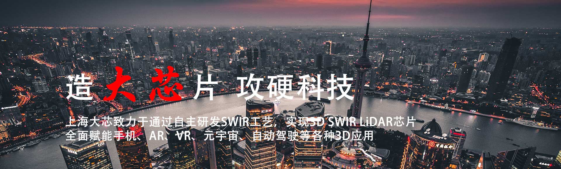 上海大芯半導(dǎo)體有限公司成立于2020年6月15日,總部位于中國(guó)的硅谷——張江科學(xué)城。公司專注于3D SWIR LiDAR芯片的開發(fā)。產(chǎn)品包括BSI面陣LiDAR芯片、Hybrid 3D stacking面陣LiDAR芯片、1310nm/1380nm/1550nm 3D SWIR sensor芯片、1550nm銦鎵砷堆疊封裝LiDAR芯片等,產(chǎn)品支持智能手機(jī)、平板、AR眼鏡、自動(dòng)駕駛、元宇宙、車載夜視輔助駕駛等各類應(yīng)用。
